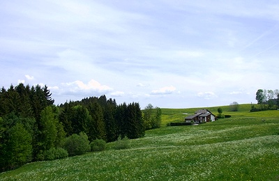 写真素材:草原と家