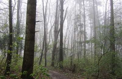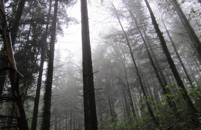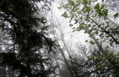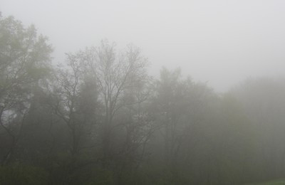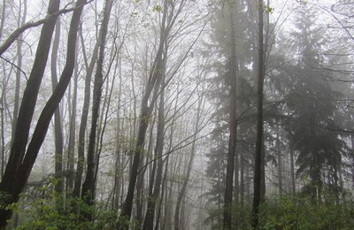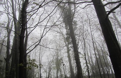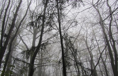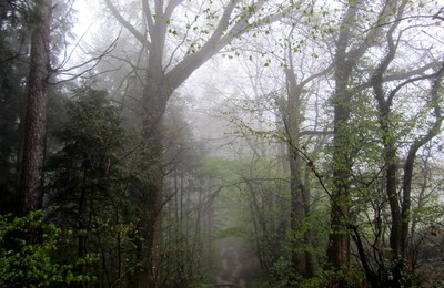 写真素材:霧の濃い森(2012/04/06)