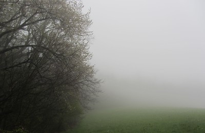 写真素材:霧の濃い草原(2012/04/08)