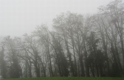 写真素材:霧の濃い森(2012/04/06)