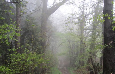 写真素材:霧の濃い森(2012/04/06)